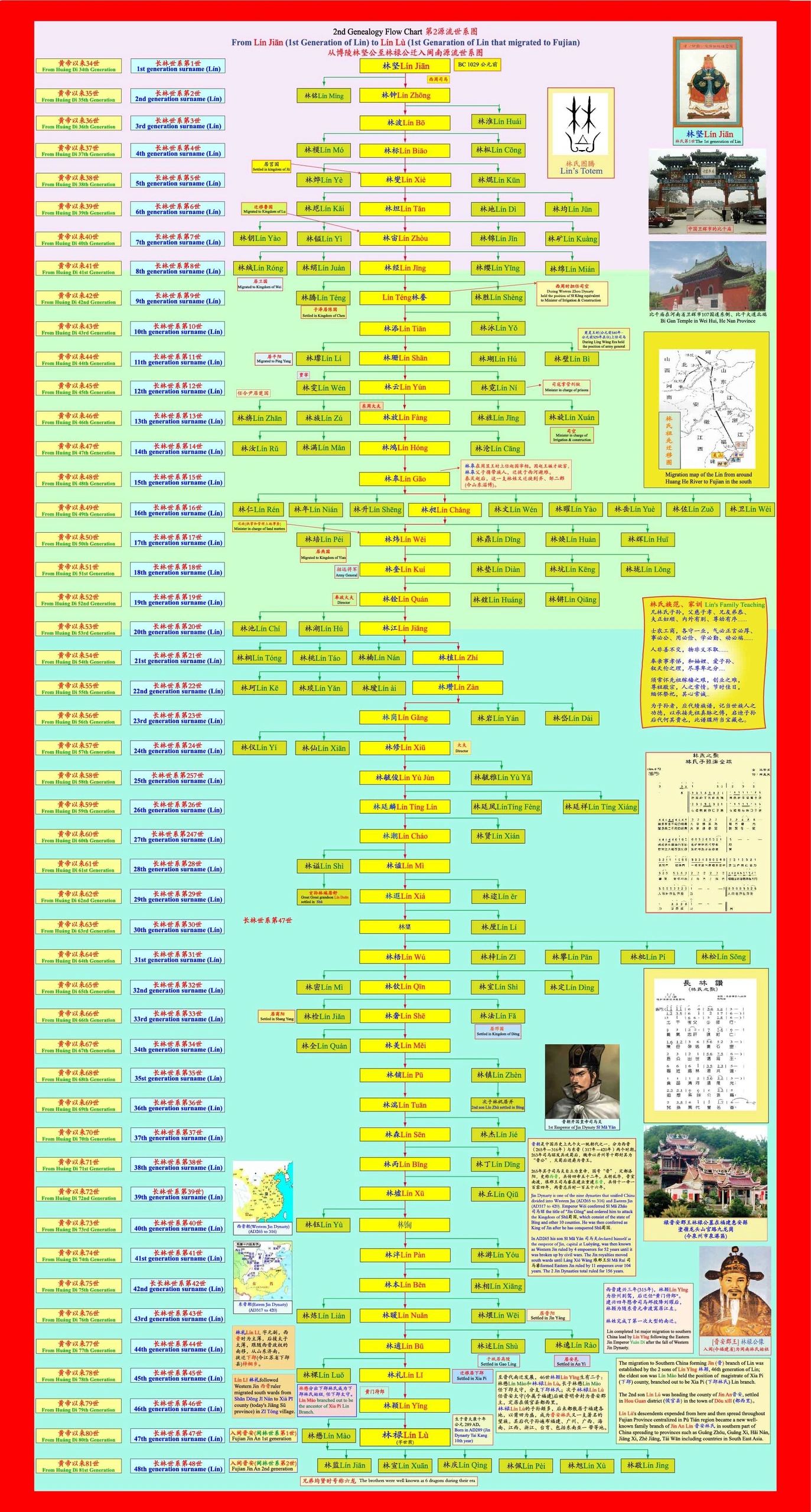 林家的起源可以回到两百多代追踪到比干,皇伯伯纣王。比干献出了生命在他试图向国王和他的儿子了后来授予林的姓氏提供忠诚和诚实的意见,从而确立了林家的血统。