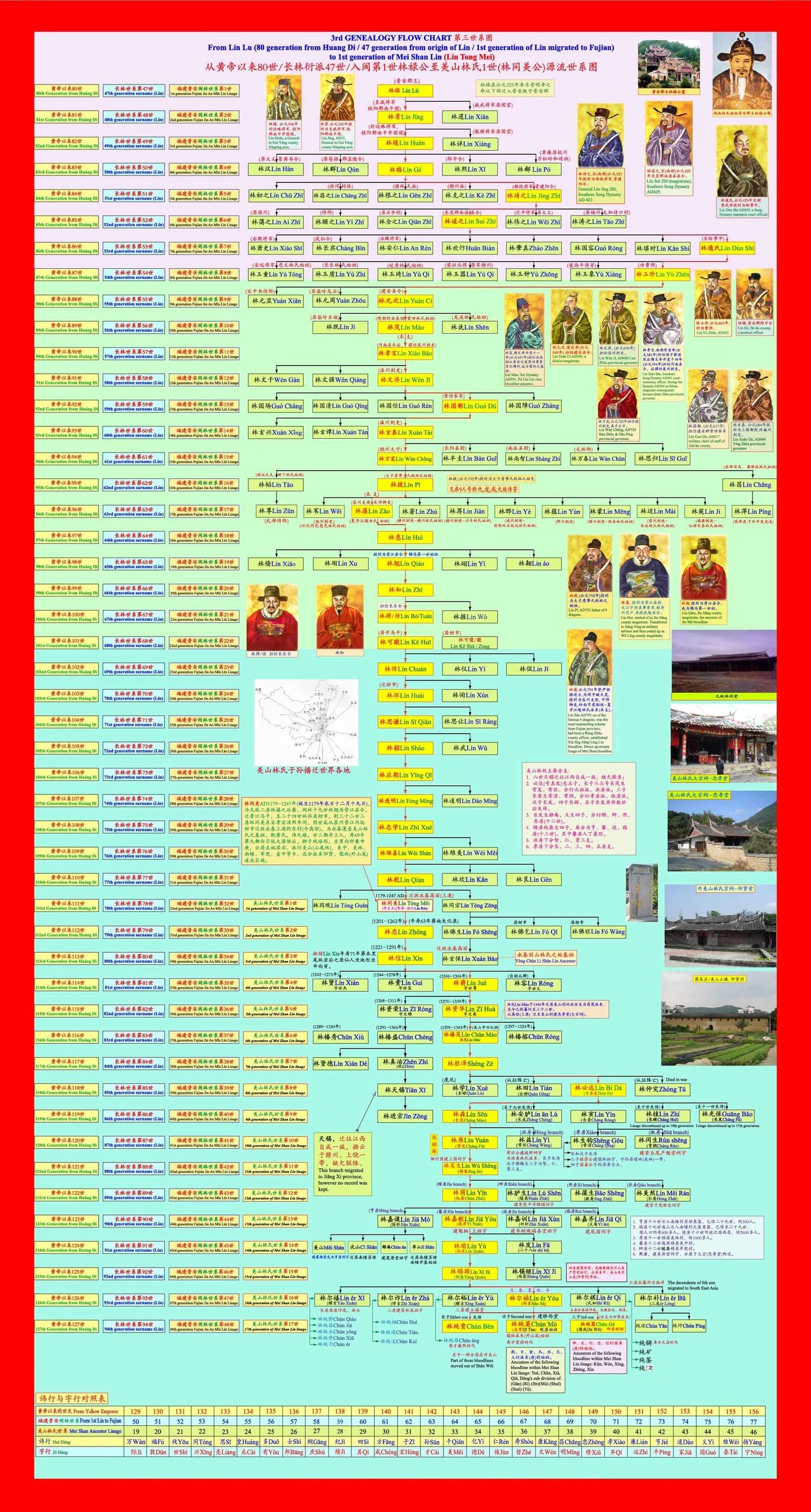 The origins of the Lin family can be traced back over two hundred generations to Bi Gan, the imperial uncle to King Zhou of Shang. Bi Gan gave his life in his attempts to provide loyal and honest advice to the King, and his son was later conferred the family name of Lin (林), thus establishing the Lin family lineage.